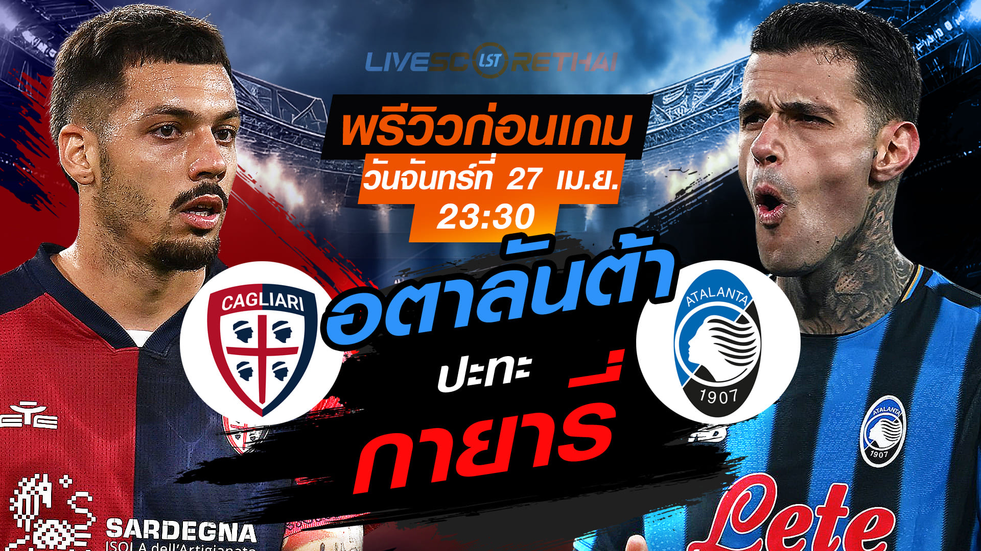 ดูบอลสด กัลโช่ เซเรีย อา อิตาลี: กายารี่ พบ อตาลันต้า คืนวันจันทร์ 27 เมษายน 2569 เวลา 23:30 น.